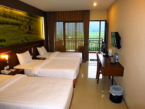 Suitable for 4 people, this larger quadruple room features a balcony, sofa and flat-screen cable TV. Private bathroom comes with a shower, slippers and towels. Please note that this room is located on the ground floor and accessible through a long flight of stairs.